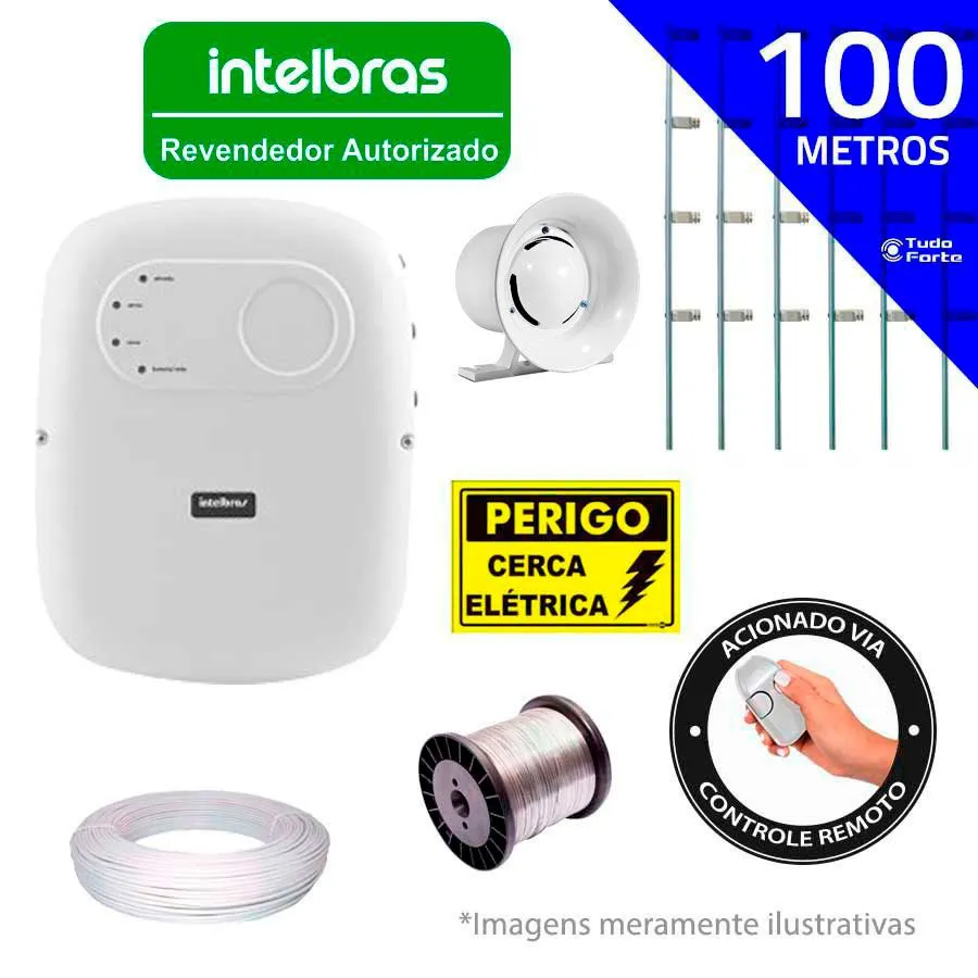 Kit de Cerca Elétrica para 100 metros Central Intelbras Liga/Desliga por Controle Remoto com Haste M + Acessórios